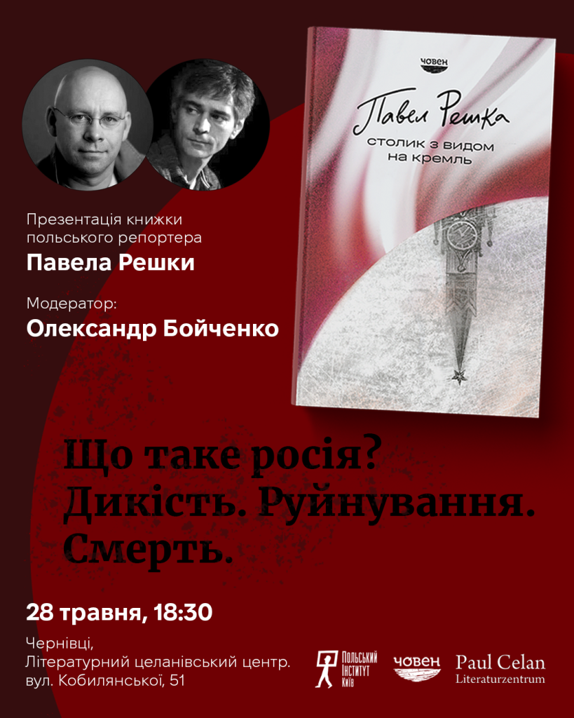 27. Mai, 18:30 Paul Celan Literaturzentrum (51, O. Kobylianska str.) ✅ Der Eintritt ist frei Präsentation des Buches mit Werken von Dmytro Zahul „Mit der siebten Posaune erwachte die Welt“, an dessen Veröffentlichung der Verlag „Dyryschabl“ und das Verlagshaus „Bukrek“ gemeinsam gearbeitet haben.Das Buch wurde mit Unterstützung der Militärverwaltung des Gebiets Tscherniwzi herausgegeben. Moderiert wird…